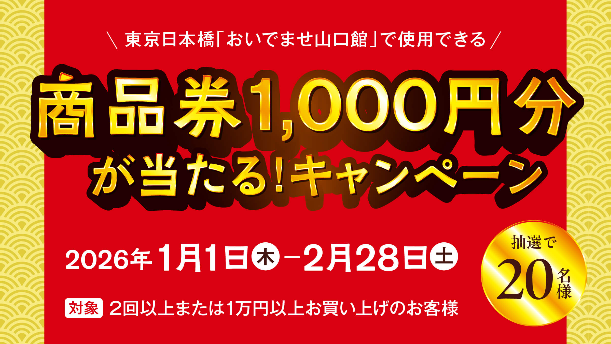 キャンペーン期間中、ECサイト「おんらいんやまぐち館」で2回以上(もしくは1万円以上)…