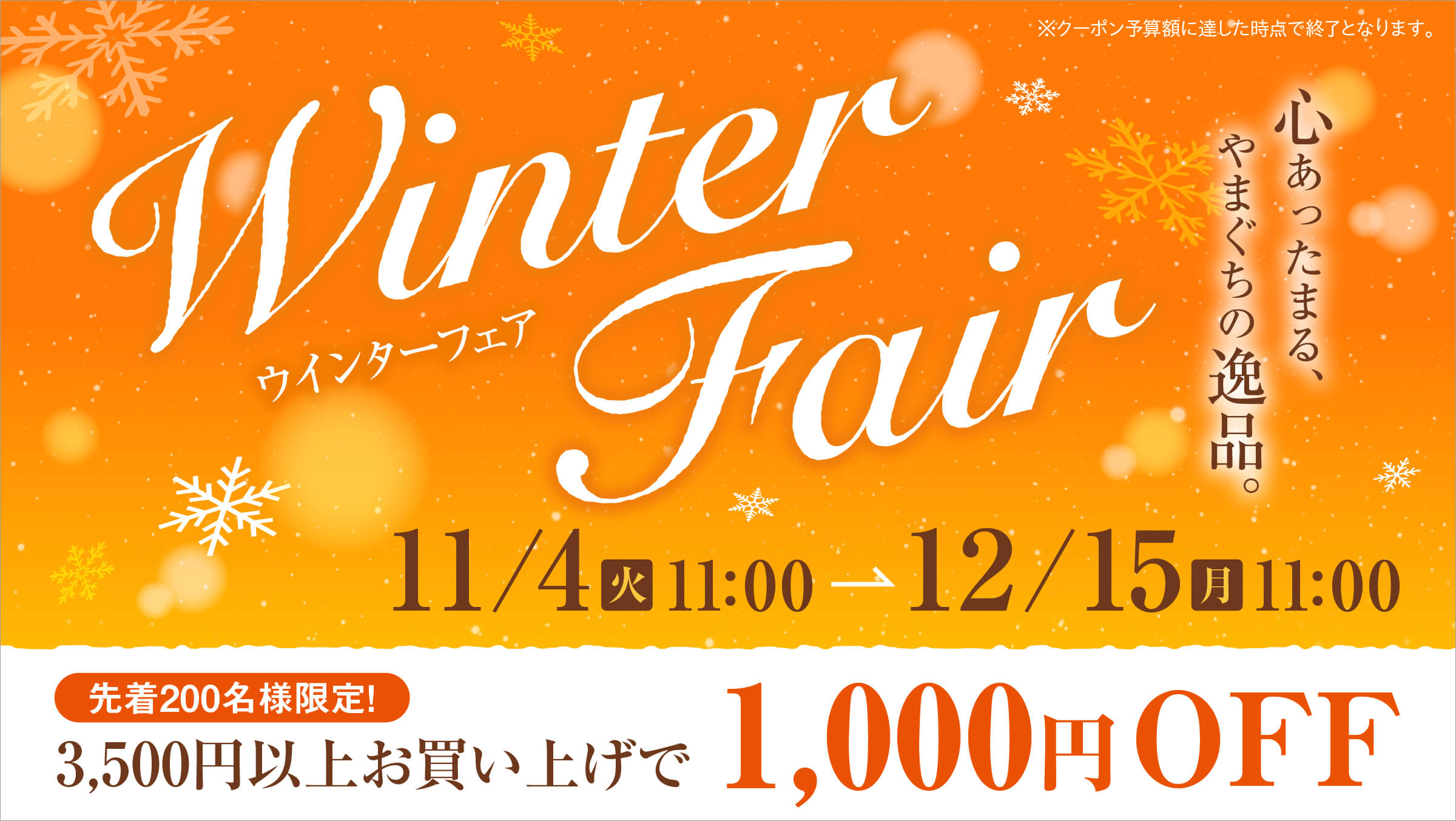ご好評をいただいている「おんらいん やまぐち館」「おんらいん やまぐち館 ヤフー店」の2店舗にて、 本日11/4からウインターフェアを開催いたします!